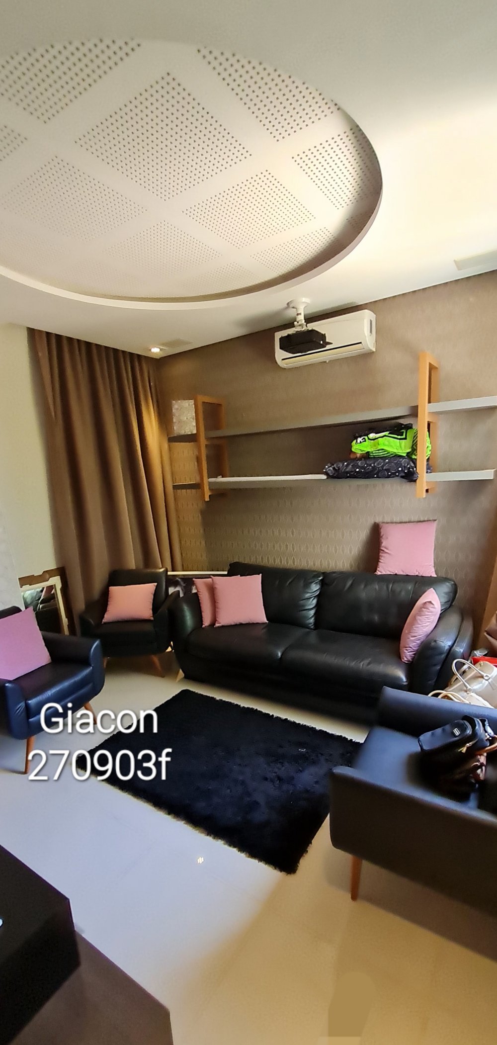 Sala de TV fechada com telão