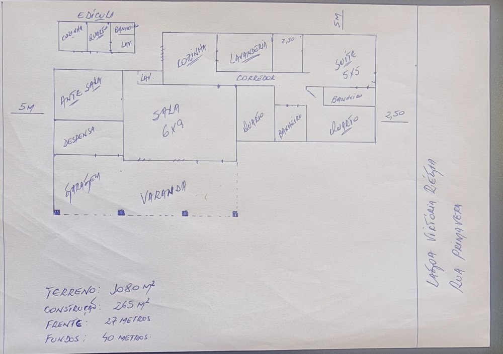 Terreno: 1.080 m2 Área construída: 265 m2