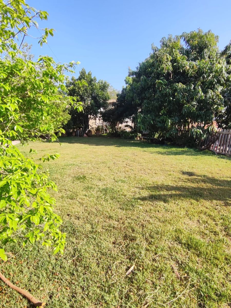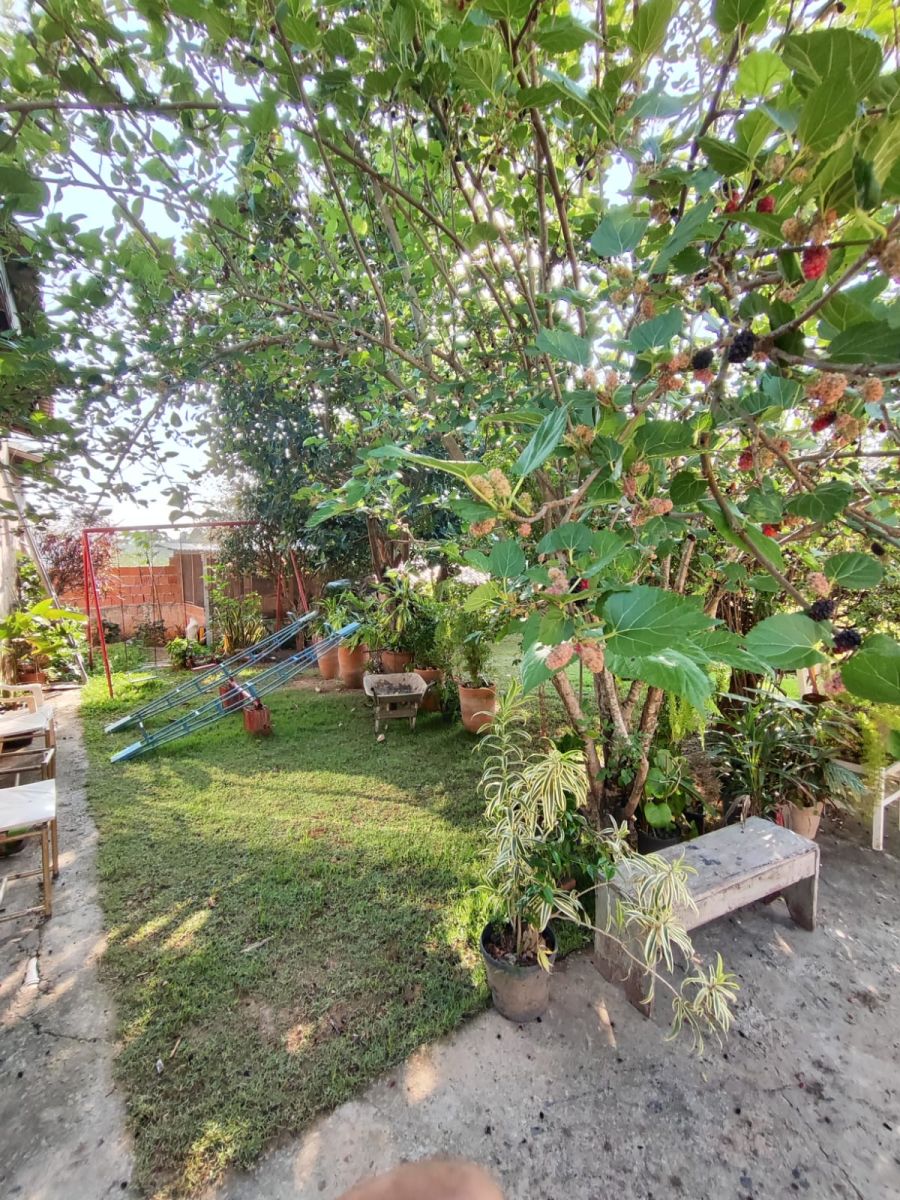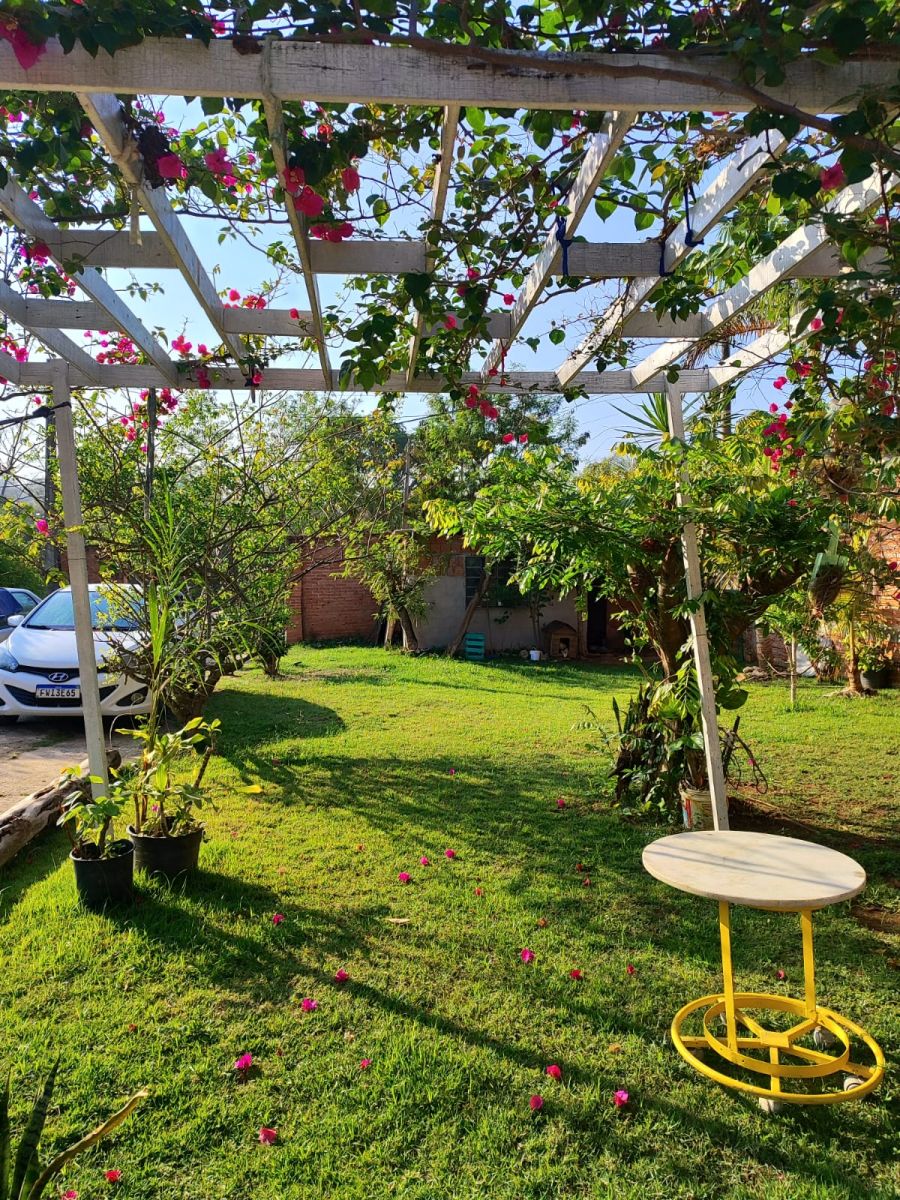 Na área da Chácara tem jardins um quarto de ferramenta e outro galinheiro com porteiras.